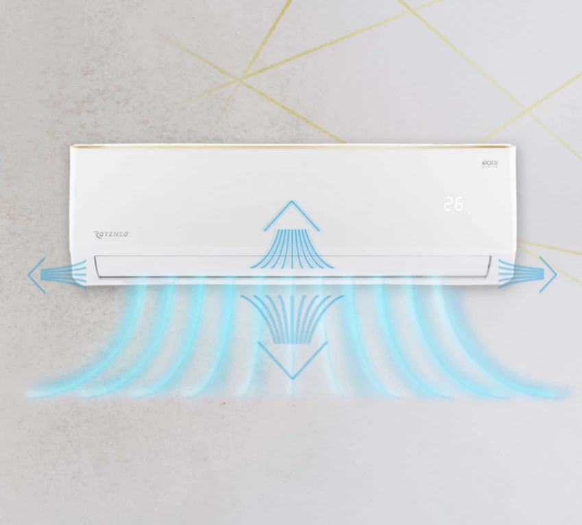 Jednostka wewnętrzna klimatyzacji Rotenso Roni X posiada siłowniki, które pozwalają na automatyczne sterowanie pracą żaluzji pionowych i poziomych w ramach systemu 4D eMOTO. Użytkownik może kontrolować ich pozycję za pomocą pilota bezprzewodowego, dzięki czemu jest w stanie dostosować nawiew do swoich potrzeb i preferencji. To w połączeniu z szerokim kątem nadmuchu zapewnia niezwykle wysoki komfort codziennego życia wszystkim domownikom.